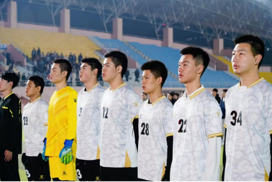 国工球员们在足球场上奋力拼搏