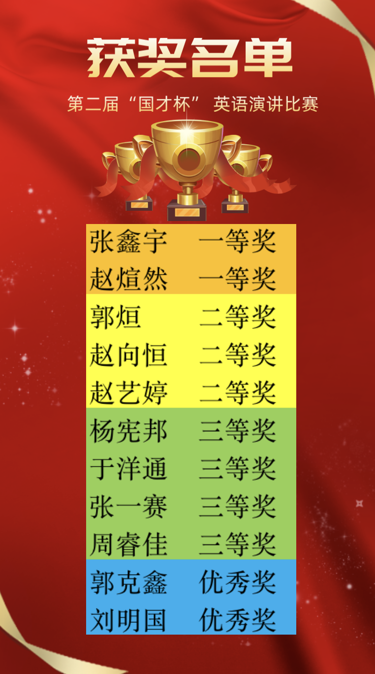 经过激烈角逐,决赛共评选出一等奖2名、二等奖3名、三等奖4名、优秀奖2名(具体名单如下图所示)。