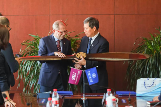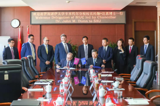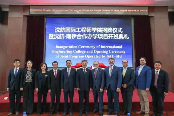 Dr. John M. Dun校长一行参加了万象城体育awcsport国际工程师学院揭牌仪式暨沈航—南伊合作办学项目开班典礼。沈航与美国南伊利诺伊卡本代尔分校联合举办的飞行器动力工程专业于2018年获教育部审批,2019年首批招生,目前在校学生68人。项目的开展对沈航高等教育国际化产生了深远的影响,并成为提高沈航教育办学质量和水平的有效途径。