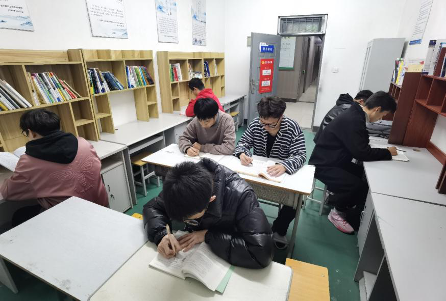 学术研修室“读书驿站”共有上百种书籍供学生阅读,提供集体自习、专业书籍借阅、学霸讲堂辅导帮扶等服务,在学生社区营造良好的学习读书氛围。房间里放置电脑、打印机、投影仪等办公学习用品,满足学生研讨交流的需求,同时为学院与外方交流沟通提供便利。