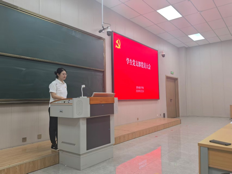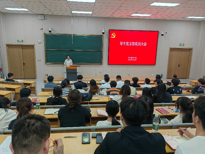 大会伊始,学院党委书记季志刚做专题党课,他以党章为根本遵循,围绕三大核心内容展开深入讲解。季书记先是带领全体党员重温党章核心要义,强调党章作为党的总章程,是党员行为的根本准则,需时刻牢记于心、外化于行;随后解读《中国共产党纪律处分条例》,阐明纪律红线不可触碰,引导党员知敬畏、存戒惧、守底线;最后聚焦“如何做好一名大学生党员”,从锤炼思想、精进学业、服务同学、责任担当等方面提出要求,鼓励大学生党员以高标准严格要求自己,在校园生活中发挥先锋模范作用。