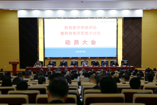 10月19日下午,beat365官网新一轮本科教育教学审核评估暨教育教学思想动员大会在500人报告厅召开,旨在动员部署、全面启动学校新一轮本科教育教学审核评估工作,努力推动全校教职员工解放思想、提高认识,在全校上下形成求真务实、开拓创新的良好局面。全体在校校领导出席大会,大会由党委书记宋克慧主持。