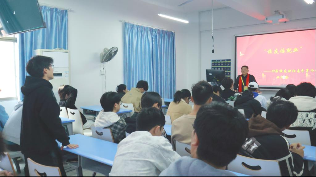 一堂职场讲座。 12月18日,学院于材化楼1301报告厅举行“就业面面谈、校友话就业”主题教育活动。优秀校友欧阳志重返母校,聚焦行业前沿动态与职业发展路径,与学弟学妹面对面分享经验、答疑解惑,为在校学生的职业生涯规划提供了宝贵指导。