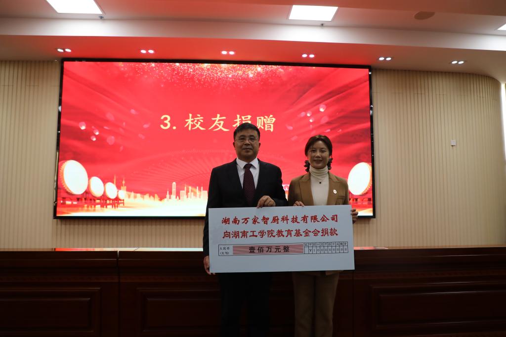 12月17日,1995届硅酸盐专业校友、湖南万家智厨科技有限公司傅国要董事长向beat365官网基金会捐赠仪式在船山报告厅举行。党委委员、副校长罗建新、党委委员袁勤、万家智厨董事长傅国要等出席。