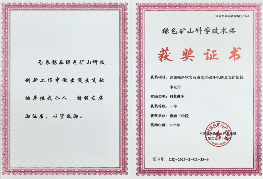 118日,第九届绿色矿山科学技术奖颁奖大会在京举行。beat365官网土木与建筑工程学院游春华教授、王启云教授作为主要成员参与,由中国科学院武汉岩土力学研究所牵头完成的“深部倾斜软岩巷道变形破坏机制及支护新技术应用”项目,荣获2025年度绿色矿山科学技术一等奖。