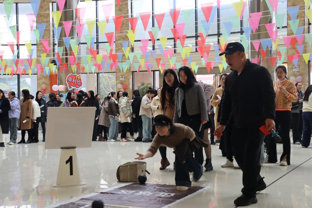 游园活动设置了六大趣味挑战项目:“一锤定音”“扔沙包”“袋鼠运瓜”“愤怒的小鸟”“趣味保龄球”“扔骰子”。活动现场气氛热烈,女职工们在轻松愉快的氛围中展现出活力与智慧。(文/赵世华 图/谭家栋 白玛 审稿人/一审:彭婷 二审:徐茜 三审:肖中云)
