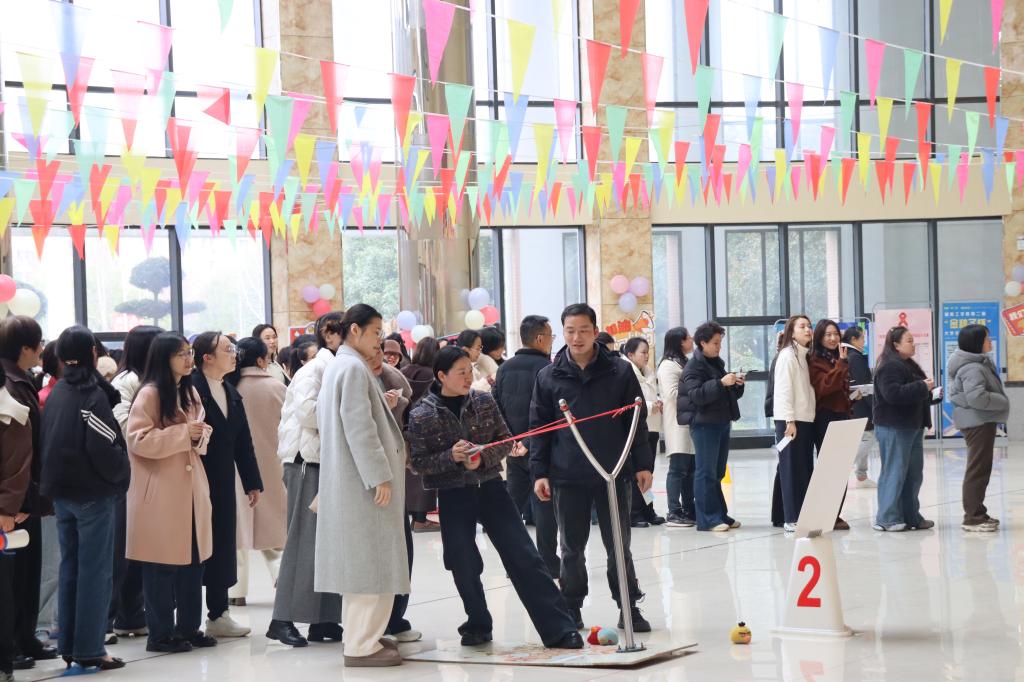 为庆祝第116个国际劳动妇女节,进一步凝聚奋进力量,beat365正版唯一官网必一工会联合女工委于3月6日下午在教学大楼阳光服务大厅举办“芳华自在 笑靥如花”主题游园活动,全校女职工齐聚一堂,共度欢乐时光。党委副书记、校长曾广胜出席开幕式并致辞。