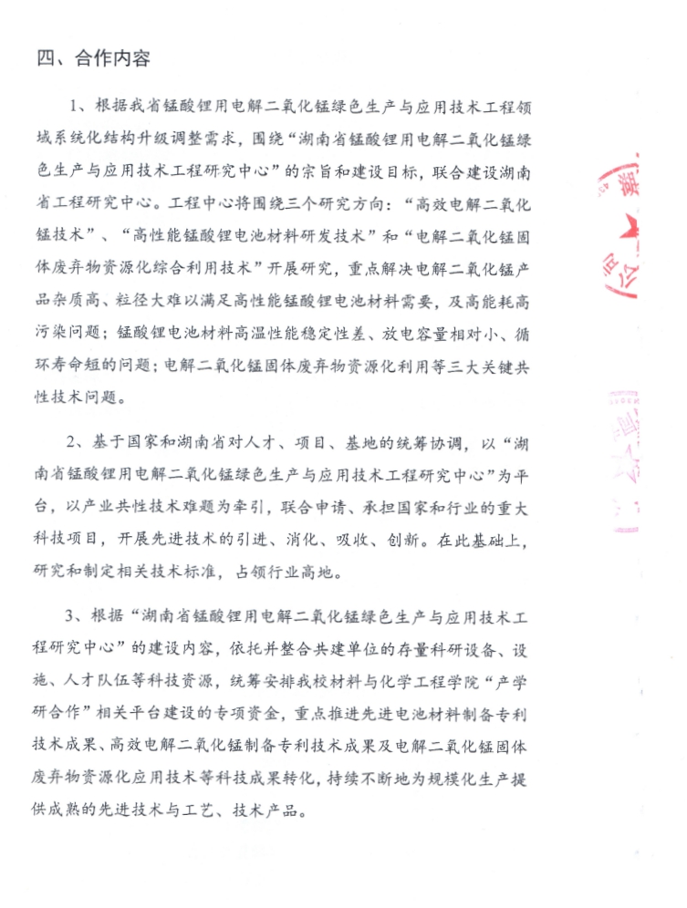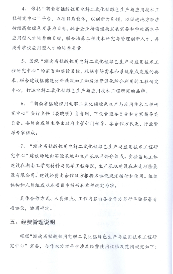 联合组建湖南省锰酸锂用电解二氧化锰绿色生产与应用技术工程研究中心合作协议书
