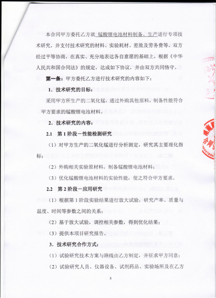 技术服务合同—锰酸锂电池材料 技术服务研究 |