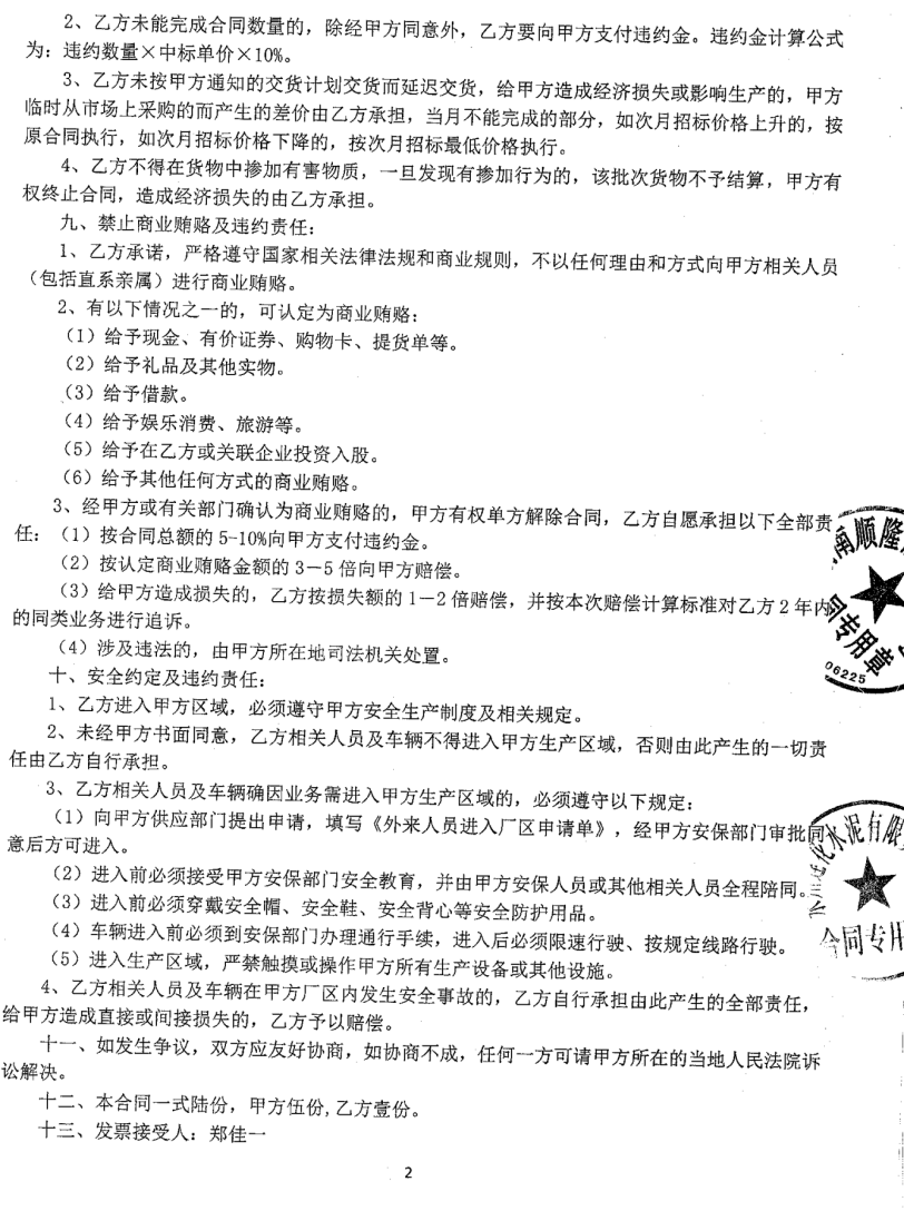 2019.1.25-2019.3.31期间 供应2000吨/月*85元/吨 2019.4.1-2019.12.31期间 供应2000吨/月*82.8元/吨 |