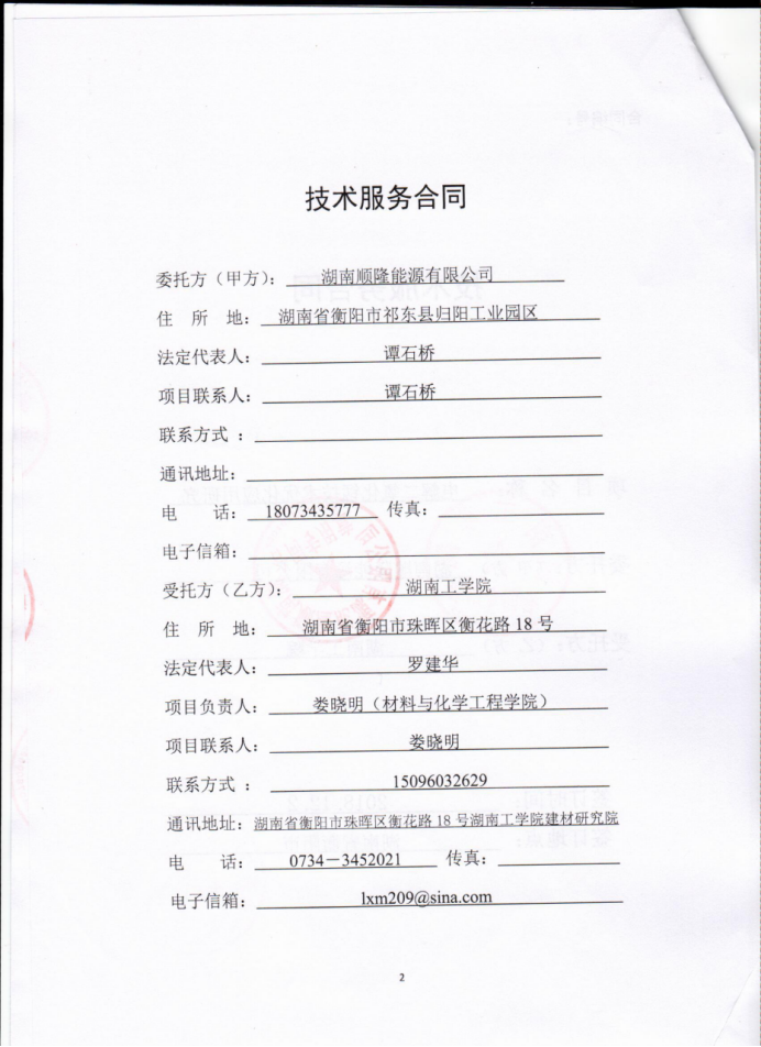 (1)技术服务合同—锰酸锂电池材料技术服务研究