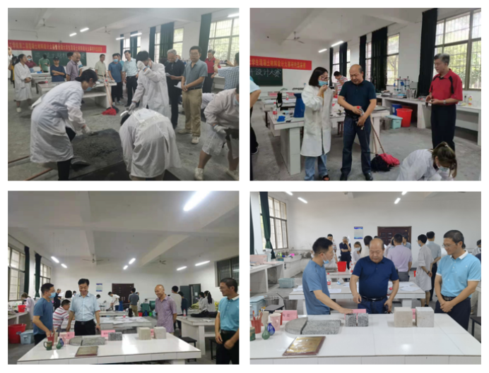 本次大赛现场气氛热烈,各参赛队伍围绕设计主题,按照自己设计的混凝土配合比有条不紊地进行比赛。宋书记、刘校长询问了大赛细则,提出了许多建设性意见;参观了历届混凝土设计大赛获奖作品,给予了高度评价,并希望竞赛成果能与企业对接,加速成果转化,服务地方经济。
