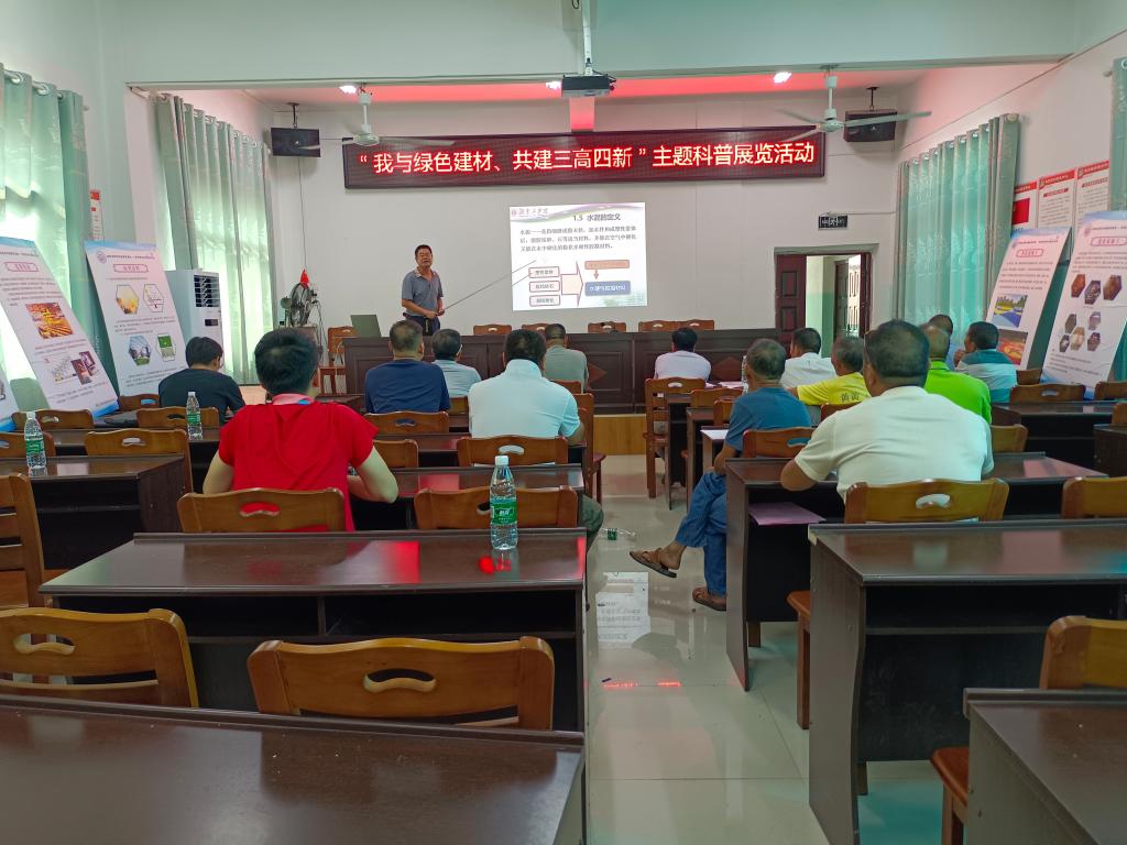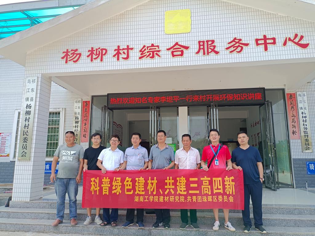 2021年9月28日上午,新型建筑材料研究院教师冒着37度高温驱车近100公里,深入beat365官网乡村振兴点衡阳市祁东县鸟江镇杨柳村开展了以“科普绿色建材,共建三高四新”为主题的全国科普日活动。