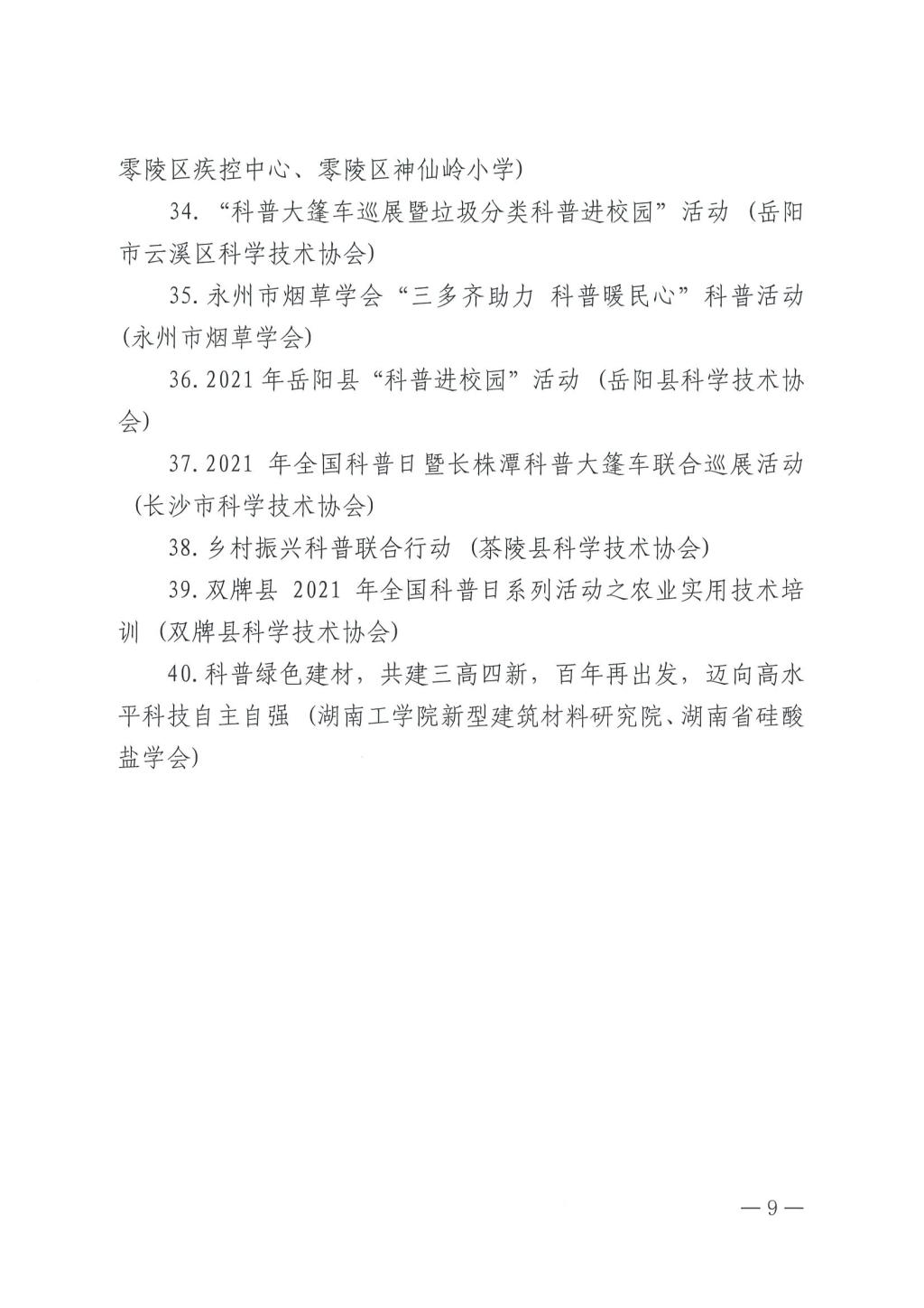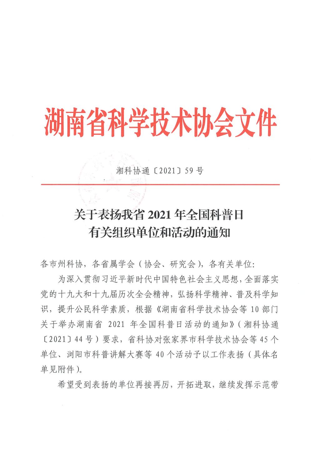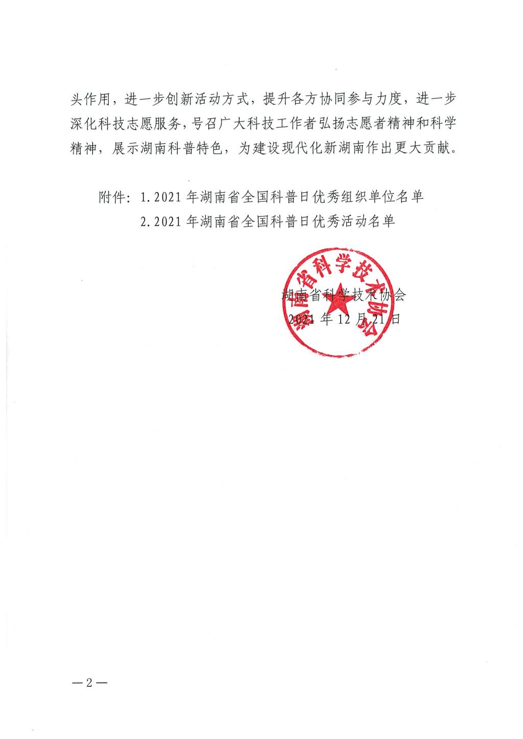 “2021年湖南省全国科普日优秀活动”