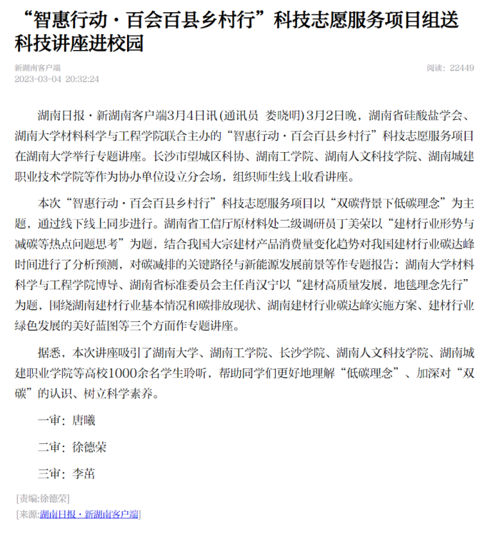 湖南日报:“智惠行动·百会百县乡村行”科技志愿服务项目组送科技讲座进校园