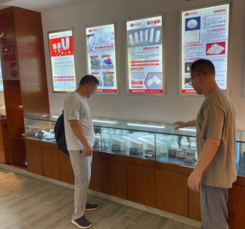 在佛山陶瓷研究所,娄晓明教授、张涛博士与企业博士后唐海深入交流,了解企业现状、发展方向、技术力量,并参观企业展馆。在美的集团,娄晓明教授、张涛博士与企业材料版块罗琼博士就无机非金属材料在美的集团的作用、研究与应用领域、企业布局与发展方向等深入交流。在邦普,双方就企业发展方向、重点研究领域及校企合作、人才培养等交流沟通,并在企业人事总监尹博的陪同下参观企业展馆。