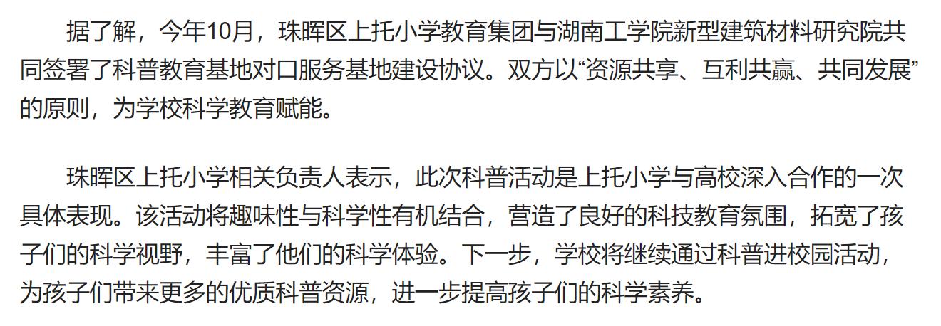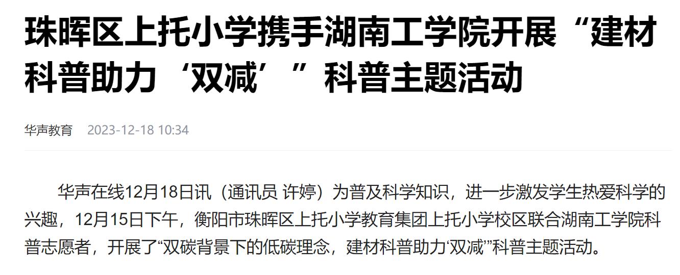 华声在线:珠晖区上托小学携手beat365正版唯一官网必一开展“建材科普助力‘双减’”科普主题活动