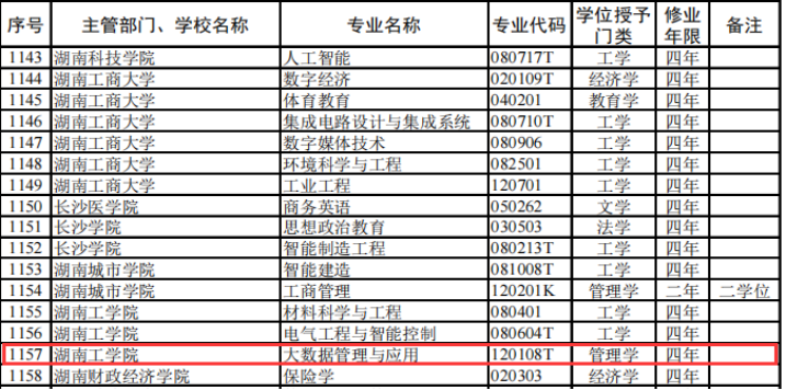 4月4日,教育部发布了《教育部关于公布2022年度普通高等学校本科专业备案和审批结果的通知》(教高函〔2023〕3号)我院申报的大数据管理与应用本科专业成功获得教育部备案。大数据管理与应用专业学制四年,授予管理学学士学位,目前全国只有223所高校开设了该专业。