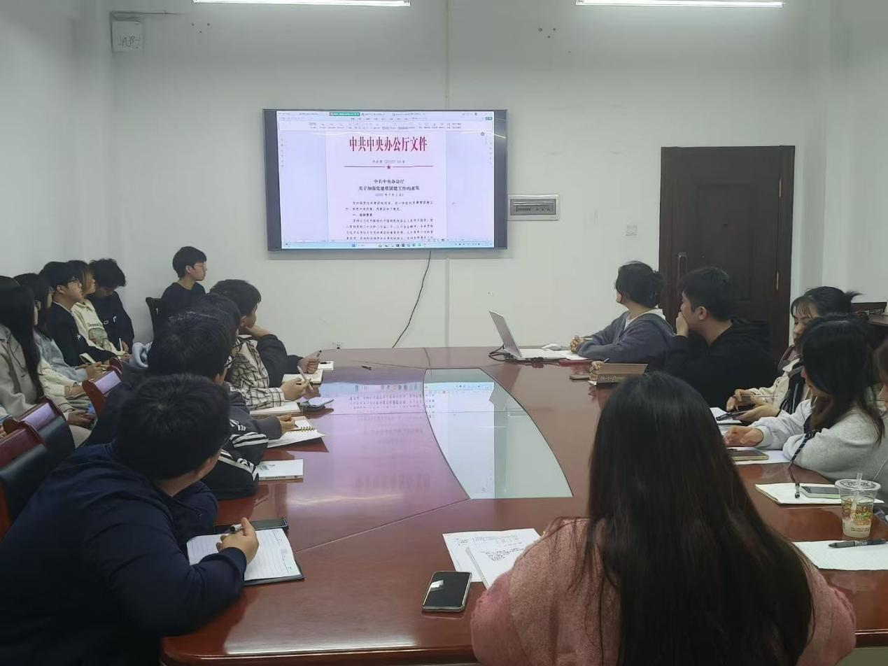 会议伊始,张诗菡围绕《中共中央办公厅关于加强党建带团建工作的意见》核心要义展开解读。她重点阐释“党管青年”“党团队一体化育人”等关键要求,强调学生骨干作为青年群体的中坚力量,需牢记初心使命,以理论武装筑牢思想根基,以责任担当回应时代要求。