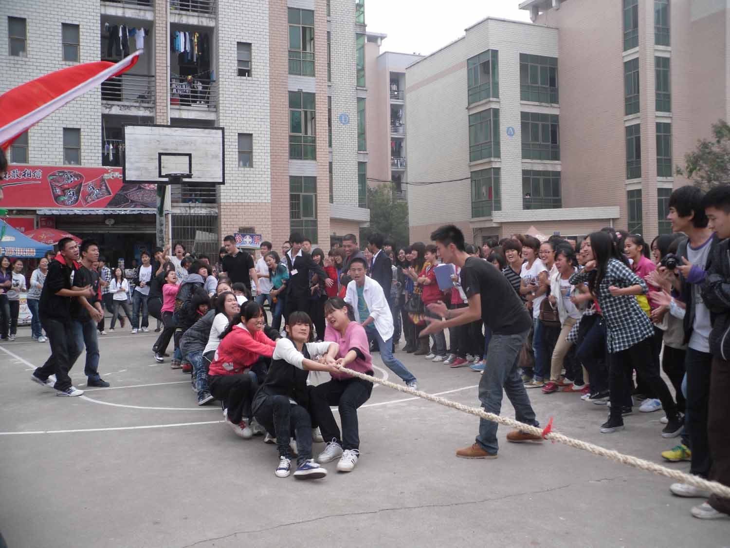 11月16日下午3点,院“新生杯”拔河比赛在酃湖校园开幕,我系参赛队伍和啦啦队在辅导员兼团总支书记王雪舟老师、曹丽慧老师及团总支学生会副主席白云飞、领队潘涛的带领下,参加了开幕式。在随后的比赛中,我系选手积极运用训练时所教技巧,在赛场上团结一致、不遗余力地投入比赛,最终女队以两个2比0的比分分别胜于计信系和外语系,男队则以险胜外语系、惜败计信系的战绩,结束了首场战斗。