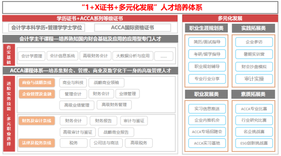 beat365正版唯一官网必一会计学ACCA方向班在保留会计学专业主干课程基础上,将ACCA课程与会计学专业部分课程进行了有效替换和补充,并为会计学ACCA方向班单独设置了贯穿大学四年全程的丰富多元化发展的学习实践活动,形成了特色鲜明的“1+X证书+多元化发展”人才培养体系。