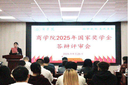 为切实做好2025年国家奖学金评选工作,充分发挥国家奖学金的育人功效和示范引领作用,9月25日晚,商学院于经管楼302举行2025年国家奖学金答辩评审会。学院党委书记曹文明、副院长李闯、朱纪红、黄飞、各教研室主任、学工办副主任白力可艳以及全体辅导员老师出席并担任评委,班级学生代表近100人参加观摩。