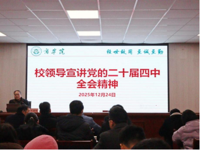 12月24日下午,校党委副书记何建雄在经管楼302专题宣讲党的二十届四中全会精神。组织部、党校、教务处、教学质量建设与评估处、创新创业教育中心、少数民族预科教育部、现代工程技术实践教学部副科级以上干部及商学院全体教职工参加学习。