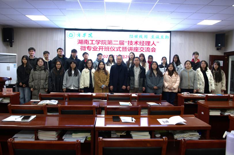 2025年12月26日下午,商学院第二届“技术经理人”微专业开班仪式暨讲座交流会在经管楼302教室举行。商学院副院长李闯、学工办主任张诗菡、教务办主任文红武、班主任夏明芳,特邀嘉宾湖南思楚信息科技有限公司总经理李意及微专业全体学员参会,共同开启技术经理人培养新征程。