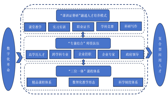 紧紧围绕应用型人才培养目标,努力构建数学、数据科学、商科交叉融合型课程体系;大力建设校内高水平实验教学与校外高规格实践教学基地相结合的理论与实践融通实习实训模式,签订衡州大道数字经济走廊——颐高数字经济产业园、高新软件产业园、互联网产业园等7个校级实践教学基地;紧密结合数据分析师、数据安全师等职业证书所需知识能力,积极实施岗位+专业融通式教学,联合北京戎易商智科技、北京评谷教育科技公司开展多场次线上、线下数据分析师证件考取宣讲培训;努力强化创新创业大赛参与,联合数据科学与大数据技术专业开展专业融通式学科竞赛,组织商学院近300名师生参与第十五届全国大学生市场调查与分析大赛;依托湖南省普通高等学校哲学社会科学重点研究基地——数字创新与数字化转型基地,大力实施本科生导师制,大数据专业近100名学生报名参加,有力促进教研相长、师生互促型成长路径。