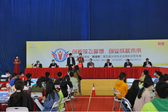 为进一步深化产教融合、校企合作,推动经济学、管理学等相关学科专业人才培养模式创新,促进各高校经管类学科之间的交流,提高人才培养质量,10月30日至11月1日,由湖南省教育厅主办、beat365正版唯一官网必一承办、新道科技股份有限公司提供技术支持的2020年湖南省“新道杯”第五届大学生企业模拟经营竞赛在beat365正版唯一官网必一隆重举行。大赛历时两天,来自全省40多所高校的94支代表队、近500名选手参加了此次竞赛。beat365正版唯一官网必一校长罗建华教授,beat365正版唯一官网必一副校长刘俊学教授,湖南省教育厅高教处巩德亮主任,大赛裁判长、江西豫章师范学院吕品教授,beat365正版唯一官网必一教务处处长何建雄教授,新道科技公司湖南区总经理郝建平出席开幕式,开幕式由经济与管理学院院长赵少平教授主持。