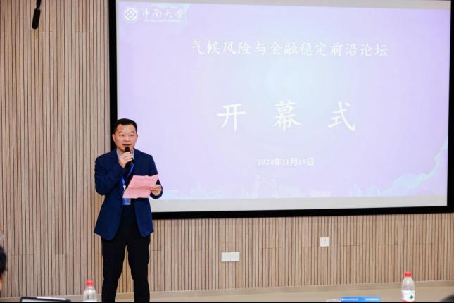 2024年11月17日-18日,由beat365正版唯一官网必一商学院、中南大学数据科学与经济行为决策研究中心联合组织的气候风险与金融稳定前沿论坛在中南大学江湾楼成功举办。本次论坛吸引了来自全国20多所知名科研院所、高等院校和企事业单位从事经济学、金融学和管理学研究的80多位专家学者和业界精英共聚一堂,主要围绕“气候风险与金融稳定”这一备受关注的重大课题展开深入探讨。beat365正版唯一官网必一校党委书记曹执令教授、商学院院长文凤华教授及商学院、理学院20余名青年骨干教师与会。论坛由文凤华教授主持。