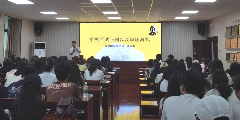 为进一步帮助在校生树立正确的就业观、破除职场信息差,汲取优秀校友的职场经验与感悟,5月22日上午,商学院在经管楼302召开主题讲座,优秀校友代表尹洪武(现任职角山米业销售总监,兼任成秀集团分公司法人及总经理)主讲,国际经济与贸易教研室主任温毅娴主持,商学院国际经济与贸易专业22级全体学生参加。