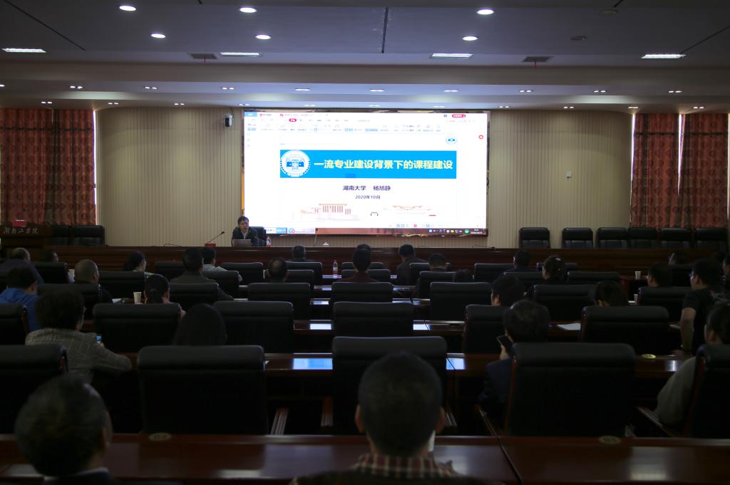 10月23日上午,学校诚邀湖南大学实验室建设与设备管理处处长、教育部机械类教学指导委员会委员、中国工程教育机械类专业认证委员会委员杨旭静教授和湖南大学信息科学与工程学院党委书记杨忠旺教授莅临beat365官网指导工程教育专业认证工作。杨旭静教授以“一流专业建设背景下的课程建设”为题在教学大楼12楼学术报告厅为教学管理人员作专题培训讲座,副校长崔晓利出席并主持会议。