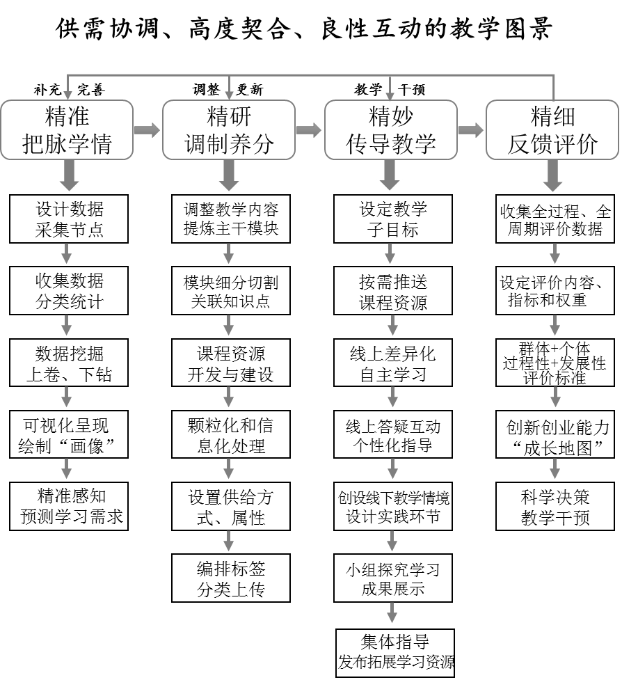 (1)精准识别学生学习需求与需求分析,运用大数据技术,深入了解学生的学习特点和需求,为教学提供精准的数据支持,建立健全的学情诊断模型。