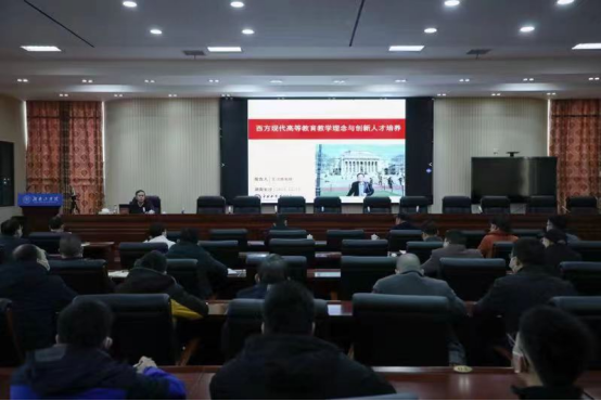 12月13日下午,受学校邀请,中南林业科技大学党委书记王汉青教授来校以“西方现代高等教育教学理念与创新人才培养”为题在教学大楼12楼船山报告厅为各二级学院院长、副院长,各教研室主任、专业带头人及教务处、现代工程技术实践教学部、创新创业教育中心、教学质量监控与评估办公室相关人员作了一场精彩的讲座,曹执令校长主持会议并讲话,刘升学副校长出席会议。
