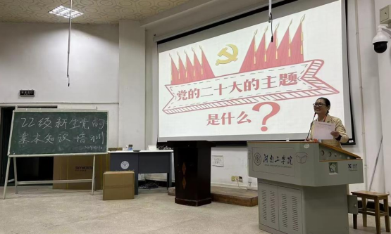 2022年11月25日晚7点,计算机科学与工程学院全体22级新生在信息楼2114教室开展了《党的基本知识》培训课程。本次党课培训由计算机学院党委副书记李玉秀和组织员魏薇主讲。