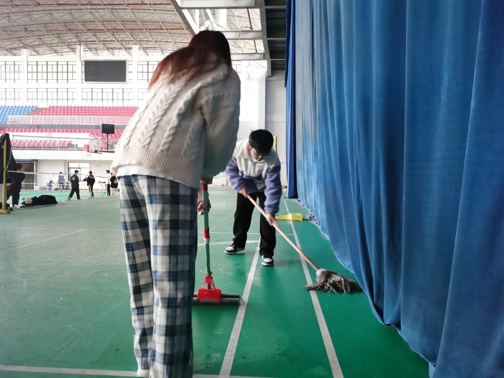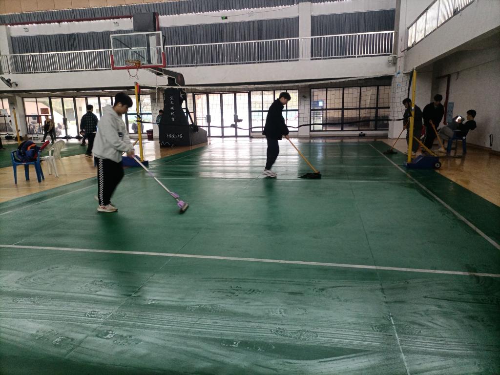 当天下午,计算机学院党委副书记兼学生第四党支部书记李玉秀带领学生党员、入党积极分子对beat365正版唯一官网必一体育馆场地进行了彻底的地面清洁。同学们自带扫把、拖把、毛巾、清洁剂等,按照事先划分的区域分组进行。大家分工明确,扫地、清洗拖把、拖地,有条不紊,让体育馆焕然一新。