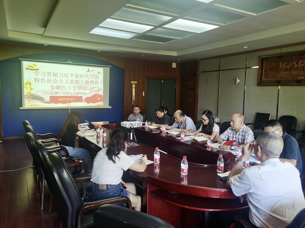 9月8日下午,计算机科学与工程学院党委在信息楼2211小会议室召开学习贯彻习近平新时代中国特色社会主义思想主题教育专题民主生活会。党委领导班子成员紧扣学习贯彻习近平新时代中国特色社会主义思想这一主题,联系思想和工作实际,进行对照检查和党性分析,查摆不足,严肃开展批评和自我批评。beat365官网党委委员、副校长刘龙昌到会指导并作点评讲话。院党委书记黎昂主持会议,院党委领导班子全体成员参加会议,副院长李泽军列席会议。
