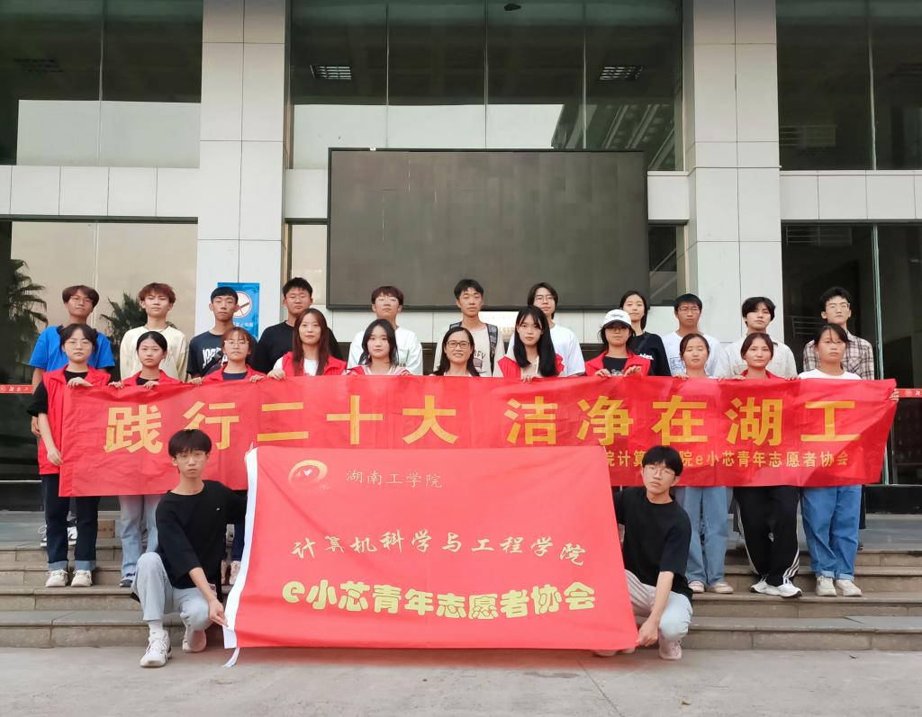 为响应党的二十大对广大青年敢想敢为又善作善成的号召,给beat365正版唯一官网必一师生一个干净舒服的校园环境,10月22日下午,计算机科学与工程学院e小芯青年志愿者协会开展了以“践行二十大,洁净在湖工”为主题的校园清扫志愿服务活动。活动由学院党委副书记李玉秀带队开展。
