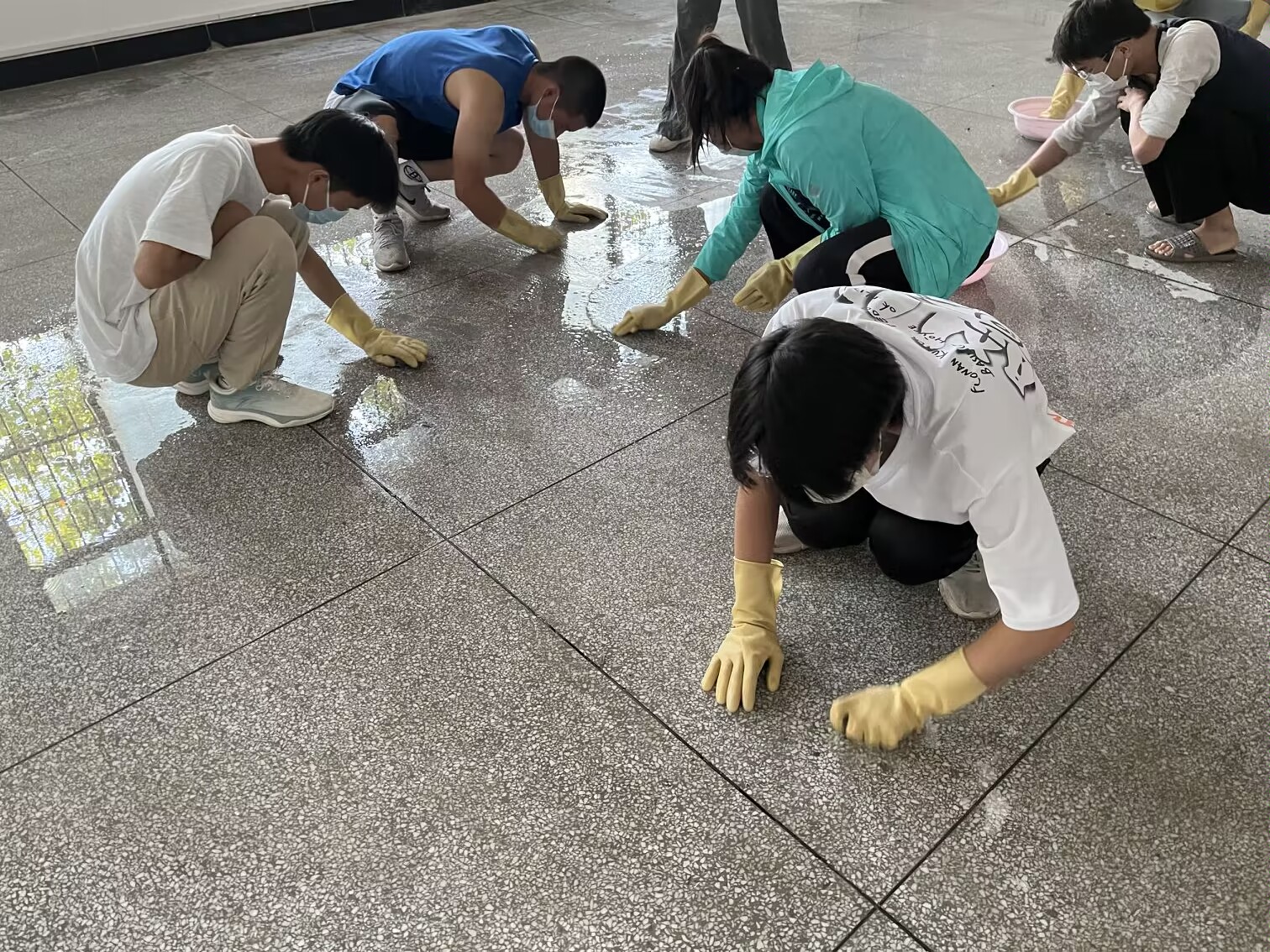 志愿者分为两队分别前往体育馆和信息楼,他们在教室和体育馆的各个角落来回穿梭,扫地,拖地,擦拭桌椅、清洁地板及窗户……三五一组,干劲十足,一项项工作有序进行。他们不怕脏,不喊累,经过三个多小时的“奋战”,体育馆和教室都变得光亮整洁、焕然一新。志愿者用实际行动为湖工增添了一份清新,一抹明亮。这不仅是一次美化校园、服务同学的活动,同时也让更多院内学子了解并投身到志愿者服务事业中,提升学校志愿者服务能力,营造和谐校园氛围,推动校园精神文明建设。
