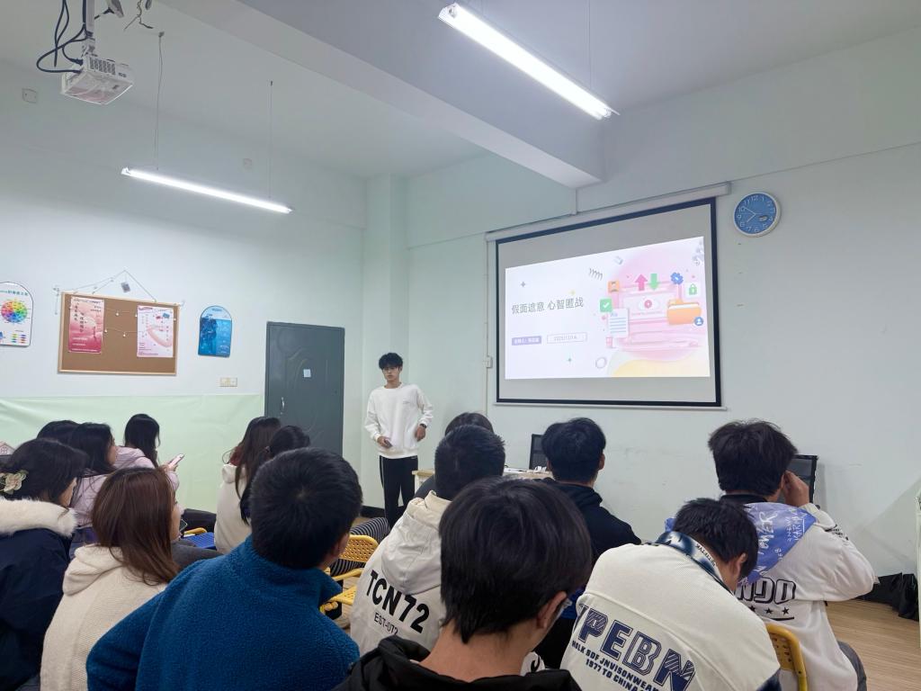 12月15日晚上,计算机科学与工程学院2025年“聆听Young心声”系列心理沙龙第一期活动在信息楼2218顺利举办。本期活动由学院团委学生会心理健康部干事商昌越主讲,以“假面遮意,心智匿战”为主题,吸引了各年级对心理学与情绪管理感兴趣的同学踊跃参与。