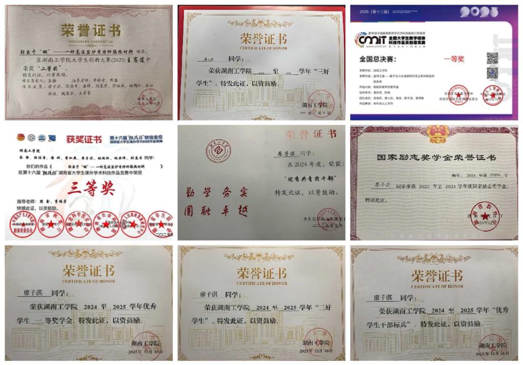 廖子淇,男,汉族,中共预备党员,计算机科学与工程学院2023级物联网工程专业学生,现任班级班长。该生始终坚持班级利益至上,认真负责、踏实履职,全心全意为同学服务,用心解决同学们在学习生活中遇到的各类问题。在校期间成绩优异、综合表现突出,先后荣获国家励志奖学金、校级一等奖学金、“三好学生”“优秀学生干部标兵”“优秀共青团干部”等荣誉,并在第十六届湖南省大学生课外学术科技作品竞赛中荣获三等奖,充分展现了过硬的专业能力与良好的责任担当。