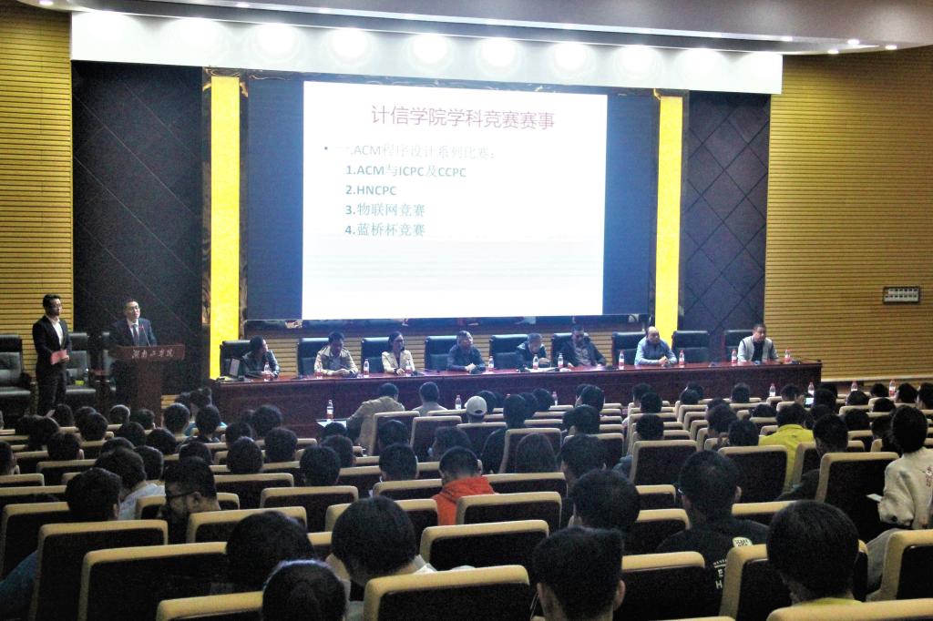 10月17日计信学院在学校五百人多功能报告厅举行了“计信学院学科竞赛颁奖典礼暨2019级专业教育活动”,教务处处长何建雄、计信学院院长罗庆云、党委书记李立波、计信学院领导班子其他成员、学科竞赛组教练及学生、2019级全体新生参加了颁奖典礼。