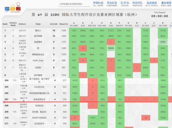 2022年12月4日,第47届ICPC亚洲区域赛(杭州站)由杭州师范大学和浙江大学联合承办,在PTA平台线上举行,来自北京大学、清华大学、上海交通大学等284所高校的546支正式队伍在各校赛点线上参加此次比赛。