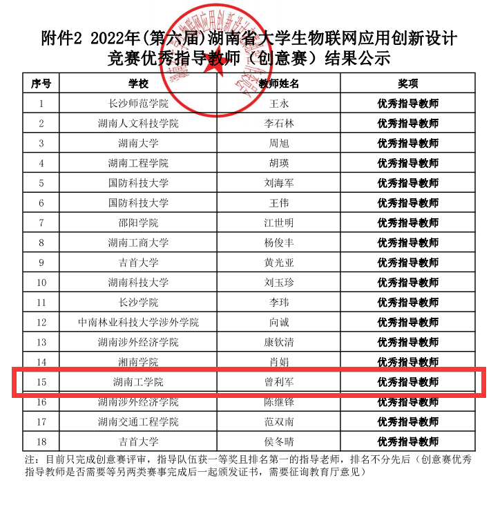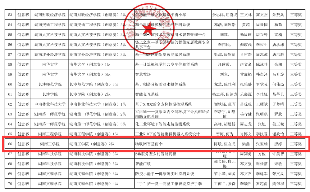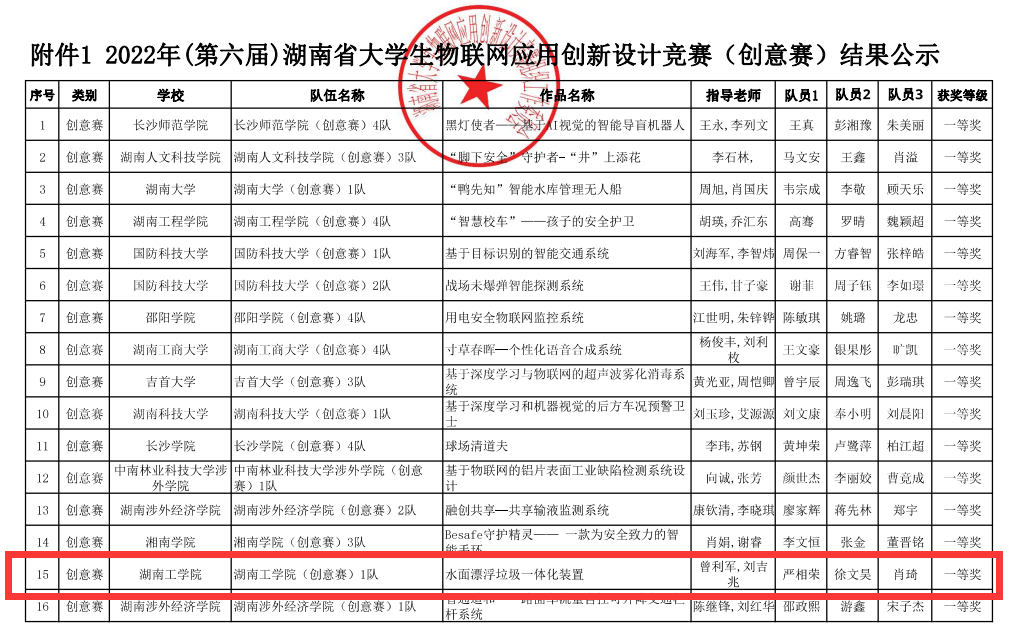 “湖南省大学生物联网应用创新设计大赛”是省内高水平计算机类竞赛之一,旨在提高大学生物联网应用和设计开发水平,培养大学生的创新能力和团队合作精神,提升大学生在物联网技术相关领域的应用和实践能力,推动beat365官网计算机类专业教学内容和方法的改革,提升专业人才培养质量。(计算机科学与工程学院 文、图/曾利军 审稿人/一审:熊芬 二审:陈敏 三审:黎昂)