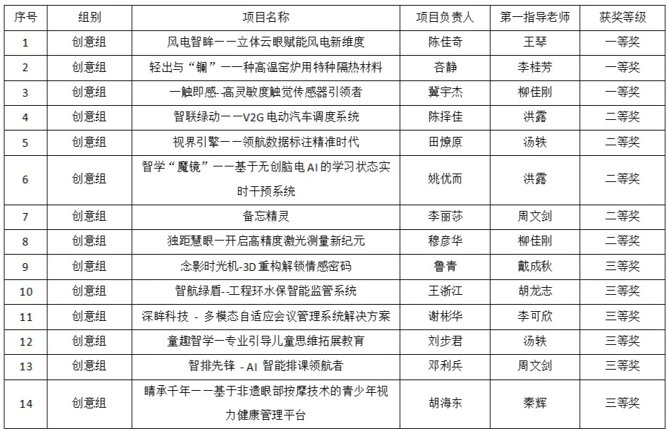 2025年5月8日18:30,我院18个参赛团队在2216举行了2025年大学生创新大赛校内选拔赛。经学生路演,专家组评选,确定高教主赛道《风电智眸——立体云眼赋能风电新维度》等三个项目获一等奖,《智联绿动——V2G电动汽车调度系统》等五个项目获二等奖,《念影时光机-3D重构解锁情感密码》等六个项目获三等奖;确定红旅赛道《薪火“湘”传:交互游戏——潇湘非遗“新”发展》项目获一等奖,《慧搭科教——推动计算机教育资源下沉的公益者》项目获二等奖,《“布”入新局:锦绣布语叙红安春秋》等二个项目获三等奖,特此公示。