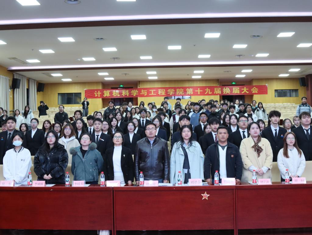 11月18日晚,计算机科学与工程学院第十九届团委学生会换届大会在明翰报告厅隆重举行。学院党委书记任长安、组织员李玉秀、学工办主任兼分团委书记刘泽芬、学工办副主任兼分团委副书记热苏里·乌斯曼及全体辅导员出席,第十九届团委学生会全体成员、各兄弟学院代表及第十八届学生会骨干共300人参会。
