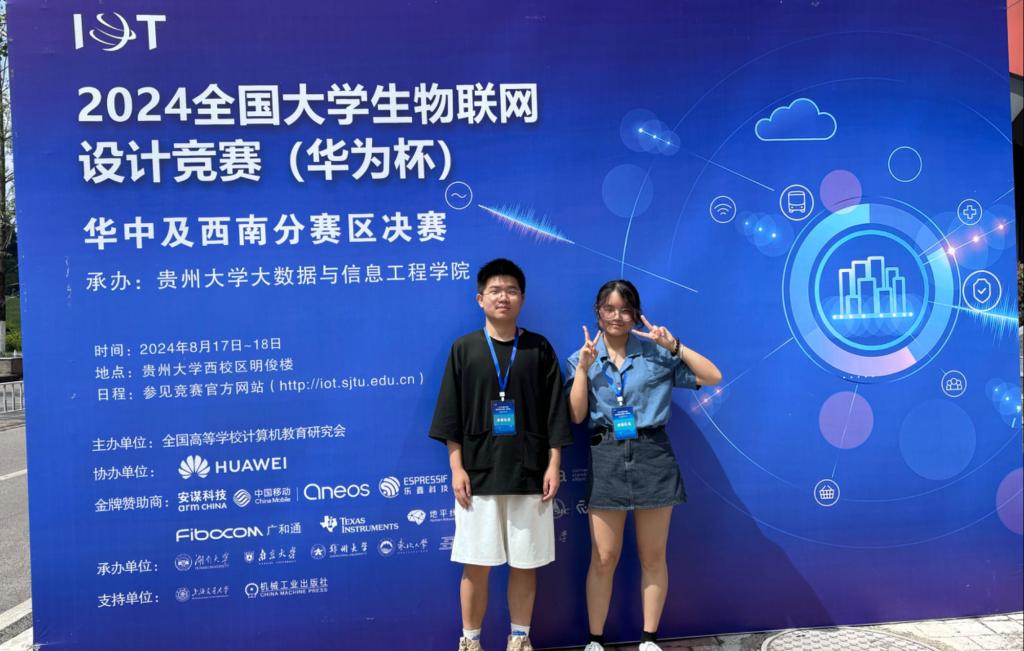 2024年全国大学生物联网设计竞赛(华为杯)华中及西南分赛区决赛于8月17日至18日在贵州大学举行。我院高度重视,精心筹备,为参赛学生提供充分指导与保障。经过前期选拔和培训,由曾利军、伍友龙老师指导的物联2201班周亦成、软件2201班华塬钰凭借作品《无尘车间的自动智能物体抓取小车》和现场答辩表现,荣获华中及西南分赛区二等奖。第一次参加该项赛事就取得的如此优异成绩,是赛训教融合的成果,也反映了我院在物联网工程应用型人才培养方面取得的进步。
