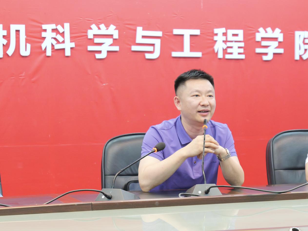 26日晚19:30,计算机科学与工程学院在信息楼2216会议室举办了“优秀校友就业创业经验分享会”。分享会特邀请了计算机学院优秀校友深圳鑫和冠供应链有限公司总经理贺金朋以及东莞市富泰电机有限公司总经理付朝军。学院党委书记叶正明、副书记黄馨仪、全体辅导员、2024届毕业生及部分大三学生参加会议。会议全程直播,学院其他年级和未到会的毕业生近两千余人通过线上或直播回放的形式参与会议。校友们分别从专业、就业和创业三个方面向同学们分享了自己的经历和感悟。他们寄语学生,要始终心怀梦想与激情,在夯实基础知识的前提下,把自己的兴趣同发展方向相结合,找准人生定位,突破自己,跳出舒适圈,尝试人生更多的可能性。
