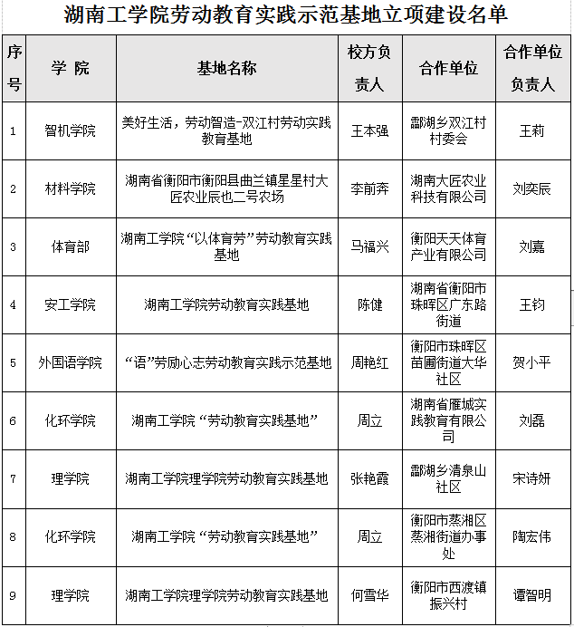 根据《关于开展beat365正版唯一官网必一劳动教育实践示范基地申报的通知》要求,经二级学院(部)申报、专家评审,拟确定《美好生活,劳动智造-双江村劳动实践教育基地》等9个基地立项建设(见附表),现予以公示。